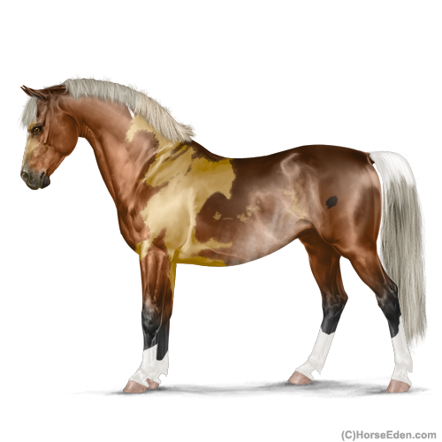 Her color is as follows: Silver Light Bay Tobiano Rabicano.