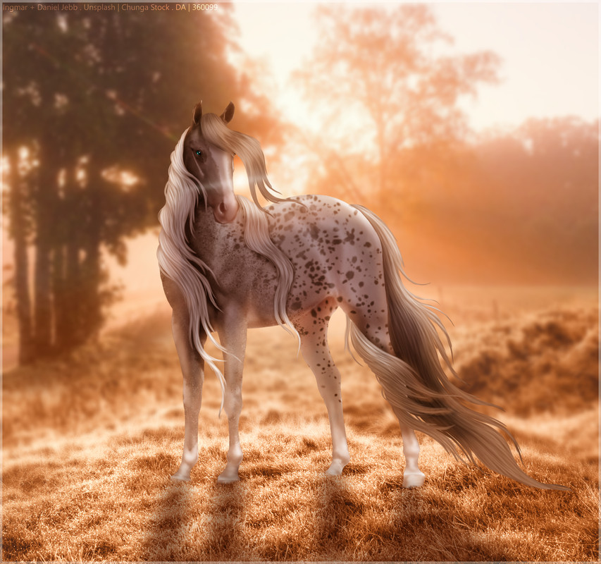 Other than these, go wild! No need to keep his markings exact (I keep rerolling him anyway lol), in fact, a minimal tobiano would probably be best, or hiding it under the bear pelt completely. I think a darker shade of chestnut would go well with this theme. If you think it would match your style, you could also make his mane and tail green, but it can be kept a regular chestnut color as well.