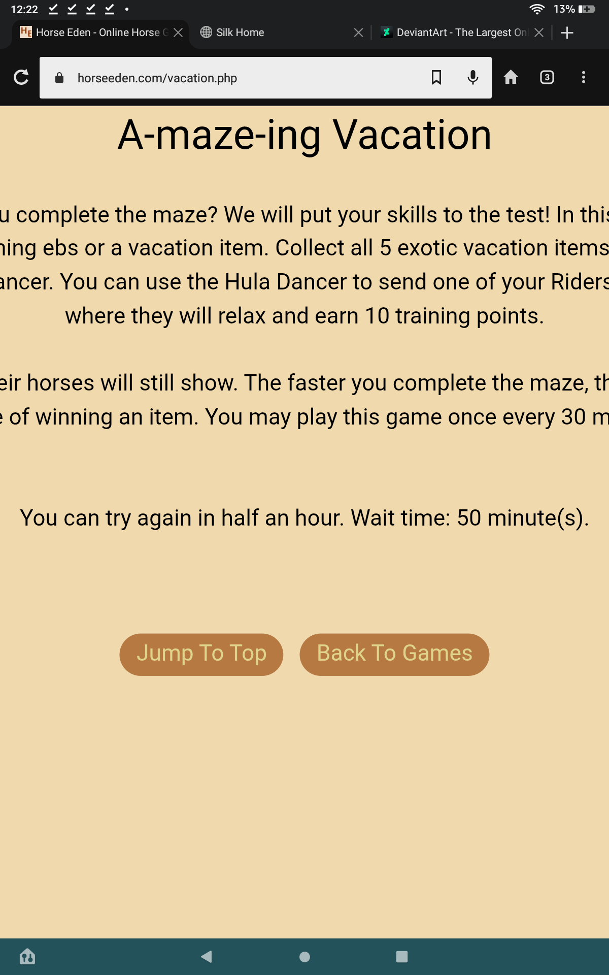 I played the A-Mazing Vacation and after i completed i noticed it said i had 56 minutes left