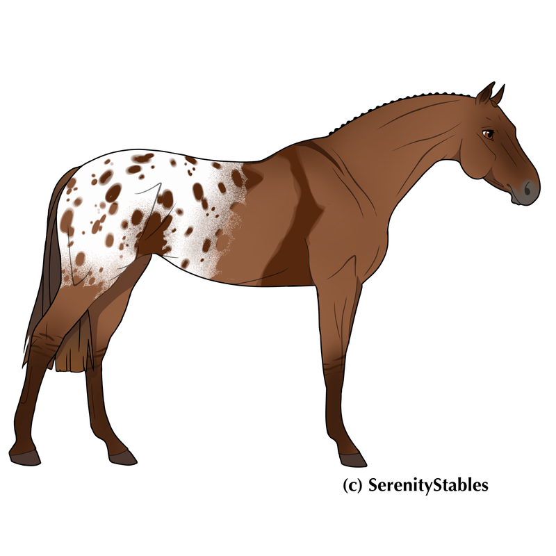 CUSTOM Owner: Blazing Appaloosa Sex: Stallion Show Name: Barn Name: Phenotype: Sunshine Splash + Brindle Genotype: ee aa sunsun(r) SplSpl(uc) +Brindle(L) SSH #123 Edited at November 11, 2025 12:50 PM by Serenity Stables