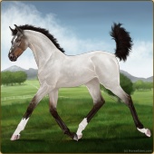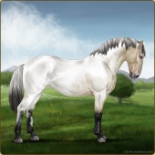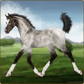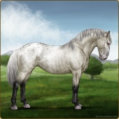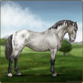 Name: Prevailing Shadow 190Age: 9 Gelding Color: Silver Smokey Grullo Varnish Fewspot Appaloosa Breed: Knabstrupper Foal Rating: P/E/E Bravery Rating: Sub-Par |  |