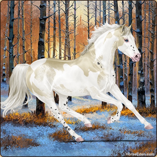 Color: Perlino Dun Tobiano Splash White Sabino Rabicano Frame