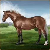Name: ۵ Burnt CandleAge: 8 Gelding Color: Silver Mahogany Bay Breed: Irish Draught Horse Foal Rating: Sub/S/E |  |