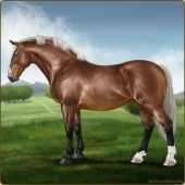 Name: JWSec X JWJet 191Age: 5 Mare Color: Light Bay Breed: Irish Draught Horse Foal Rating: Sub/S/W |  |