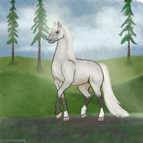 Name: PK Ato MariAge: 1 Filly Color: Silver Smokey Grullo Splash White Sabino Frame Blanket Appaloosa Breed: Irish Sport Horse Foal Rating: P/E/E |  |