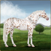 Name: Adoring Hennessey EEEAge: 10 Stallion Color: Mahogany Bay Roan Frame Appaloosa Breed: Sport Horse Foal Rating: E/E/E |  |
