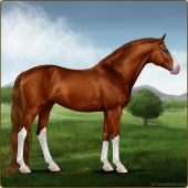 Name: CBS Esmeralda EEWAge: 8 Mare Color: Chestnut Sabino Breed: Sport Horse Foal Rating: E/E/W Bravery Rating: Sub-Par |  |