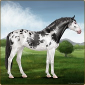 Name: 43427958 EEPAge: 4 Stallion Color: Black Sabino Frame Blanket Appaloosa Breed: Sport Horse Foal Rating: E/E/P For Breeding! |  |