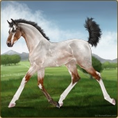 Name: Coppe X PCMta 190Age: 12 Mare Color: Light Bay Roan Splash White Breed: Sport Horse Foal Rating: E/E/P |  |