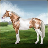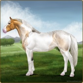 Name: ABLBx X EWEZz 195Age: 6 Mare Color: Silver Golden Bay Roan Dun Tobiano Splash White Breed: Irish Sport Horse Foal Rating: E/E/E |  |