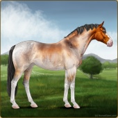 Name: ✵Smokin' JettAge: 3 Mare Color: Light Bay Roan Dun Sabino Snowflake Appaloosa Breed: Sport Horse Foal Rating: E/E/W For Sale! |  |