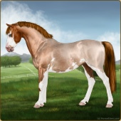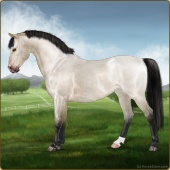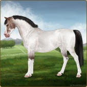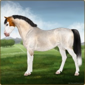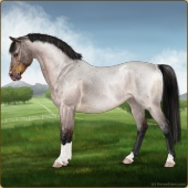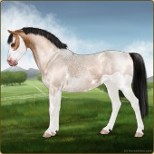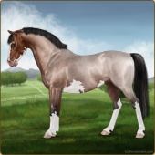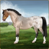 Name: Grano X MintE 197Age: 4 Gelding Color: Buckskin Roan Splash White Breed: Sport Pony Foal Rating: E/E/E |  |