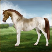 Name: ₩|Ciri EEEAge: 5 Mare Color: Mahogany Bay Roan Sabino Breed: Sport Pony Foal Rating: E/E/E |  |