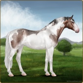 Name: |WWE| FantasiaAge: 5 Mare Color: Light Bay Roan Dun Splash White Sabino Snowflake Appaloosa Breed: Sport Pony Foal Rating: W/W/E Bravery Rating: Sub-Par |  |