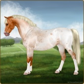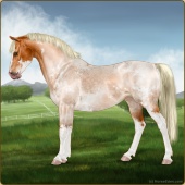 Name: Grano X Budgi 196 +intAge: 5 Mare Color: Flaxen Red Roan Sabino Blanket Appaloosa Breed: Sport Pony Foal Rating: E/E/E |  |