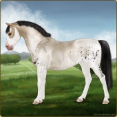 Name: ⋌ ConquistadorAge: 4 Stallion Color: Blue Roan Splash White Sabino Frost Appaloosa Breed: Sport Pony Foal Rating: W/W/W For Sale! |  |