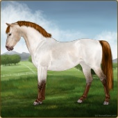 Name: Grano X Wanhe 197Age: 4 Mare Color: Flaxen Red Roan Sabino Breed: Sport Pony Foal Rating: E/E/E |  |