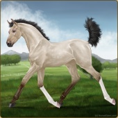 Name: Grano X LoopA 198Age: 3 Stallion Color: Palomino Roan Breed: Sport Horse Foal Rating: W/W/W |  |