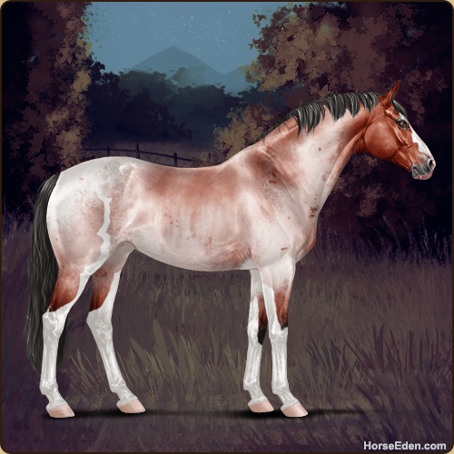 Color: Blood Bay Roan Sabino