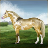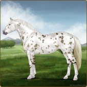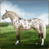 Name: foal 53609392Age: 0 Stallion Color: Gold Champagne Varnish Snowflake Appaloosa Breed: Irish Sport Horse |  |