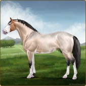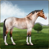 Name: Whiskey Temptation Age: 9 Mare Color: Buckskin Roan Breed: Sport Horse Foal Rating: E/E/E For Breeding! |  |