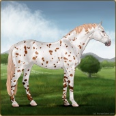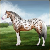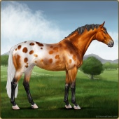 Name: ♤ WizardryAge: 7 Mare Color: Chestnut Splash White Near Leopard Appaloosa Breed: Irish Sport Horse Foal Rating: E/E/E |  |