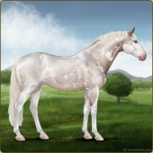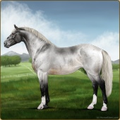 Name: Silver Giant (EEW)Age: 16 Stallion Color: Blue Roan Tobiano Sabino Varnish Leopard Appaloosa Breed: Irish Sport Horse Foal Rating: E/E/W |  |