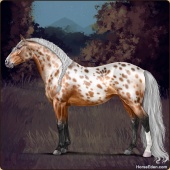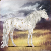 Name: Whispering of the WindAge: 9 Mare Color: Palomino Roan Splash White Leopard Appaloosa Breed: Sport Horse Foal Rating: P/P/P |  |