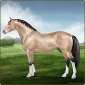 Name: Colos X Iolau 194Age: 5 Mare Color: Buckskin Splash White Breed: Sport Horse Foal Rating: E/E/E |  |