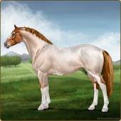 Name: Colossal PegasusAge: 5 Mare Color: Flaxen Red Roan Breed: Irish Sport Horse Foal Rating: E/E/E |  |