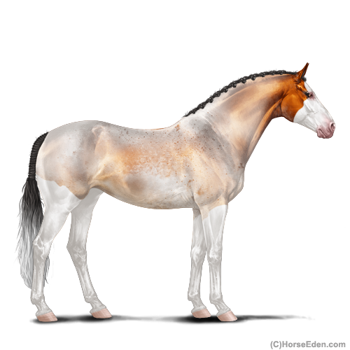 Color: Copper Bay Roan Splash White