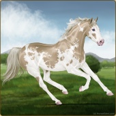 Name: Words For The Stars{^}Age: 13 Mare Color: Amber Creme Pearl Tobiano Sabino Breed: Thoroughbred Foal Rating: P/P/E |  |