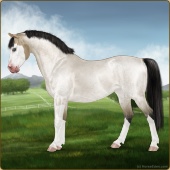 Name: Dark Inga EEEAge: 5 Mare Color: White Breed: Sport Pony Foal Rating: E/E/E |  |