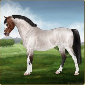 Name: Boysenberry GHCAge: 8 Gelding Color: Mahogany Bay Roan Splash White Breed: Sport Pony Foal Rating: E/E/E |  |