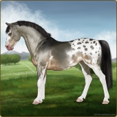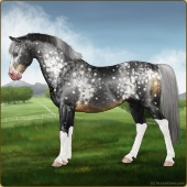 Name: Prism WalkerAge: 11 Stallion Color: Smokey Black Sabino Frost Appaloosa Breed: Sport Pony Foal Rating: E/E/W For Breeding! |  |