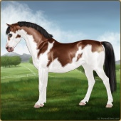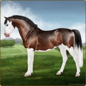 Name: CF Longest Night EEEsAge: 9 Stallion Color: Brown Splash White Sabino Breed: Sport Pony Foal Rating: E/E/E Bravery Rating: Sub-Par For Breeding! |  |