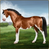 Name: Sora EWEAge: 6 Mare Color: Light Bay Splash White Breed: Sport Pony Foal Rating: E/W/E |  |