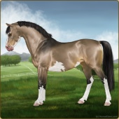 Name: Music Man [EWE]Age: 3 Stallion Color: Buckskin Roan Splash White Breed: Sport Pony Foal Rating: E/W/E For Breeding! |  |