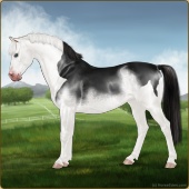 Name: White X Heada 190Age: 9 Stallion Color: Black Splash White Breed: Sport Pony Foal Rating: E/W/E For Breeding! |  |