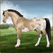 Name: Impossible Blue EyesAge: 13 Stallion Color: Buckskin Splash White Sabino Varnish Appaloosa Breed: Sport Pony Foal Rating: P/P/P For Breeding! |  |
