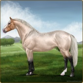 Name: Toruk in SpaceAge: 11 Stallion Color: Silver Light Bay Roan Dun Breed: Irish Sport Horse Foal Rating: E/E/E For Breeding! |  |