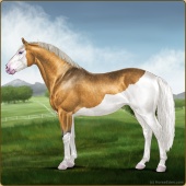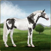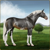 Name: CatylnnAge: 8 Mare Color: Silver Black Tobiano Frame Breed: Sport Horse Foal Rating: E/E/E |  |