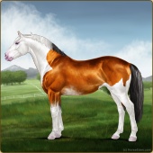 Name: 🌄 007Age: 7 Gelding Color: Light Bay Splash White Sabino Breed: Irish Sport Horse Foal Rating: P/P/E |  |