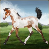 Name: Bugsy X Poo PEWAge: 0 Mare Color: Silver Golden Bay Roan Splash White Varnish Snowflake Appaloosa Breed: Sport Horse Foal Rating: P/E/W |  |