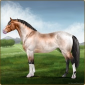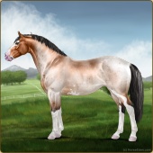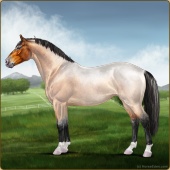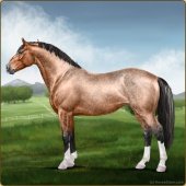 Name: 🌄 071Age: 9 Gelding Color: Buckskin Roan Breed: Irish Sport Horse Foal Rating: P/W/E |  |
