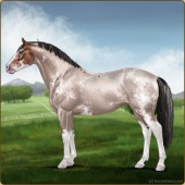 Name: 41760794PEEAge: 0 Mare Color: Mahogany Bay Roan Sabino Snowflake Appaloosa Breed: Irish Sport Horse Foal Rating: P/E/E |  |