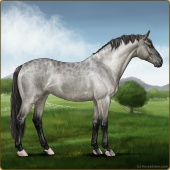Name: 41952511Age: 5 Mare Color: Roan Grullo Breed: Sport Horse Foal Rating: E/E/E |  |