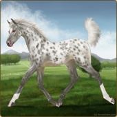 Name: Isadora GHCAge: 1 Filly Color: Smokey Black Leopard Appaloosa Breed: Sport Pony Foal Rating: E/E/E |  |