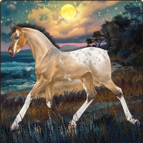 Color: Golden Bay Roan Dun Sabino Varnish Blanket Appaloosa