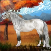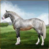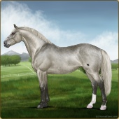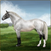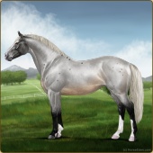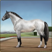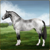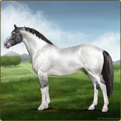 Name: Riding Silver Age: 14 Stallion Color: Silver Black Sabino Breed: Irish Sport Horse Foal Rating: E/E/E For Breeding! |  |